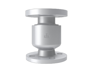 其安裝在垂直管道上,正常處于關閉狀態。當進口端介質壓力低于出口端時,彈簧如有及閥瓣自動將閥芯推向閥座而使閥門關閉,阻止介質逆流。
